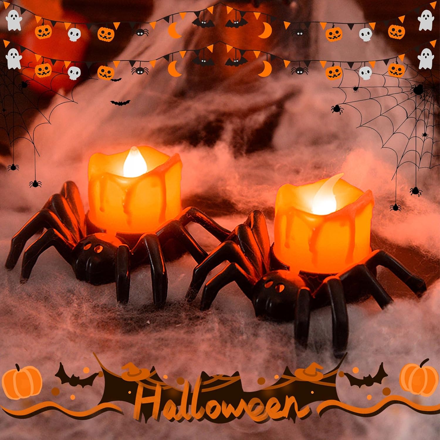 LED-Kerzen mit Spinnenmotiv