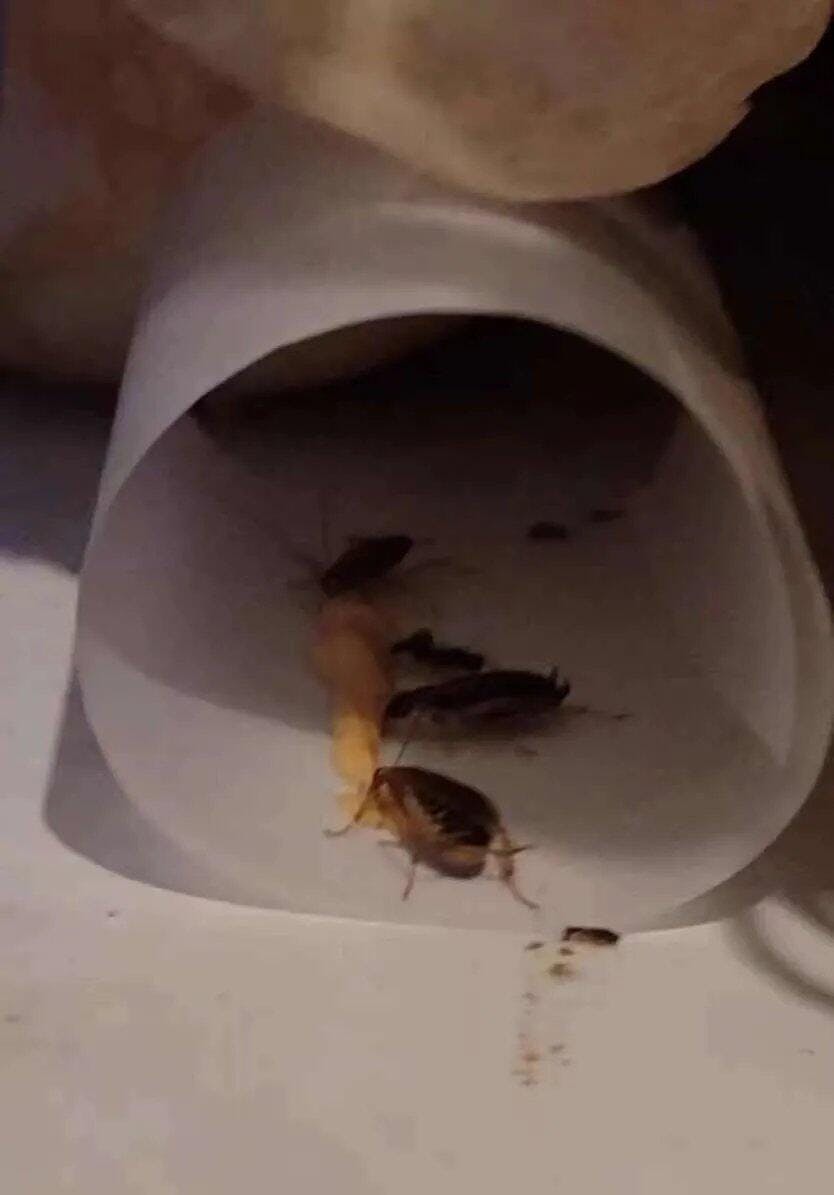 Gerade habe ich eine Kakerlake gesehen, die das Mittel gefressen hat – es scheint wirklich zu wirken, super Effekt!