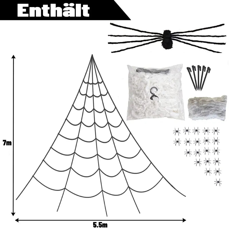 Alles-in-einem Set: Netz, Plüschspinne, kleine Spinnen & Spinnenwatte